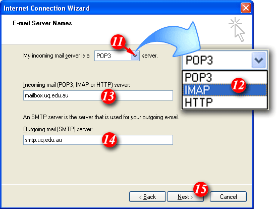 | 12)Select 'IMAP' from the